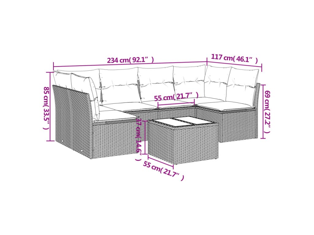 Tato zahradní sedací souprava je dokonalým doplňkem vaší zahrady, terasy nebo dvorku a poskytne vám pohodlné a příjemné místo, kde si můžete povídat s rodinou a přáteli nebo jen tak odpočívat a užívat si pobyt venku.