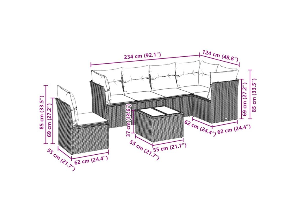 Tato zahradní sedací souprava je dokonalým doplňkem vaší zahrady, terasy nebo dvorku a poskytne vám pohodlné a příjemné místo, kde si můžete povídat s rodinou a přáteli nebo jen tak odpočívat a užívat si pobyt venku.