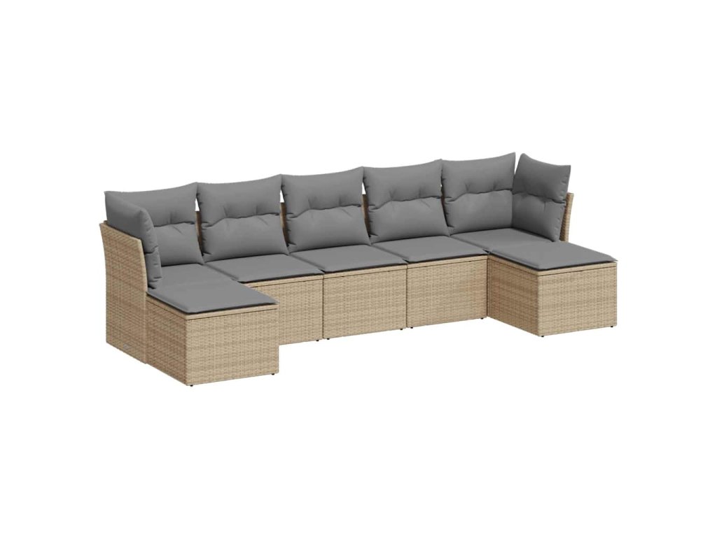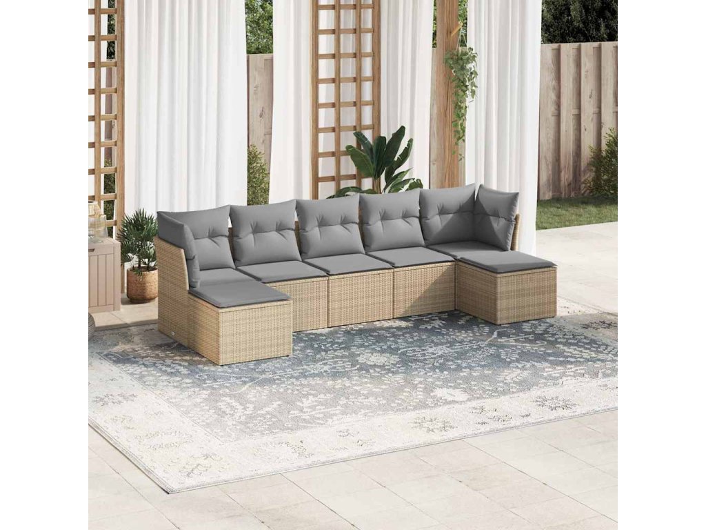 7dílná zahradní sedací souprava a podušky světle šedá polyratan 3218032