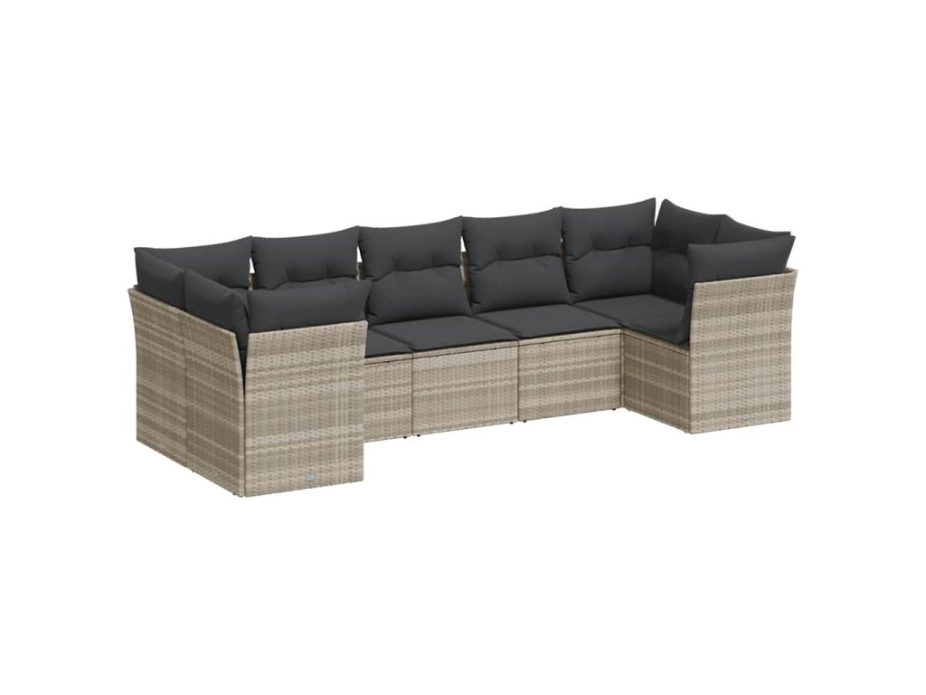 7dílná zahradní sedací souprava a podušky světle šedá polyratan 3218122