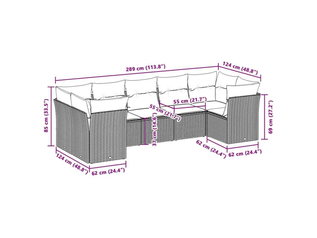 Tato zahradní sedací souprava je dokonalým doplňkem vaší zahrady, terasy nebo dvorku a poskytne vám pohodlné a příjemné místo, kde si můžete povídat s rodinou a přáteli nebo jen tak odpočívat a užívat si pobyt venku.