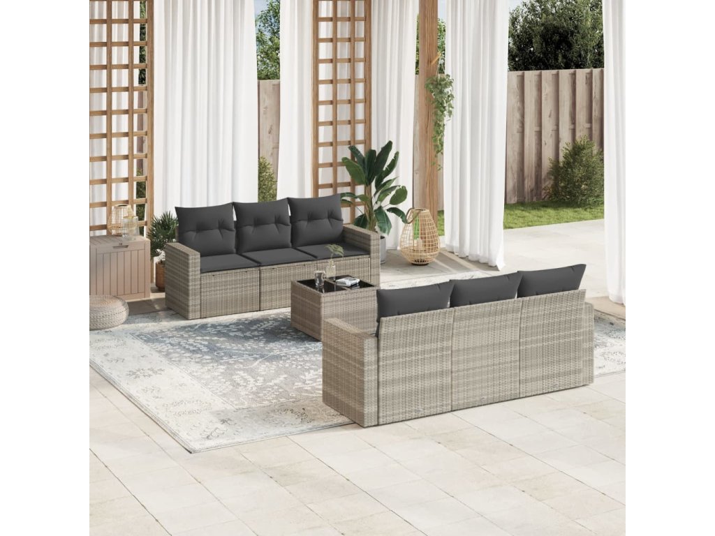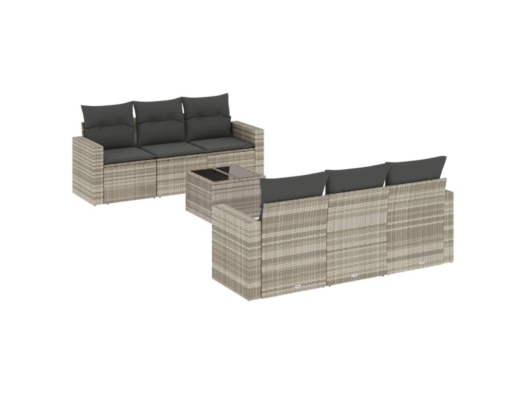 7dílná zahradní sedací souprava a podušky světle šedá polyratan 3218702