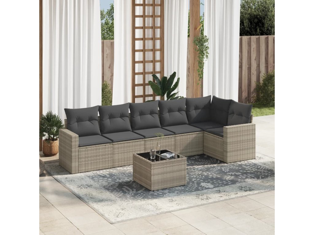 7dílná zahradní sedací souprava a podušky světle šedá polyratan 3218992