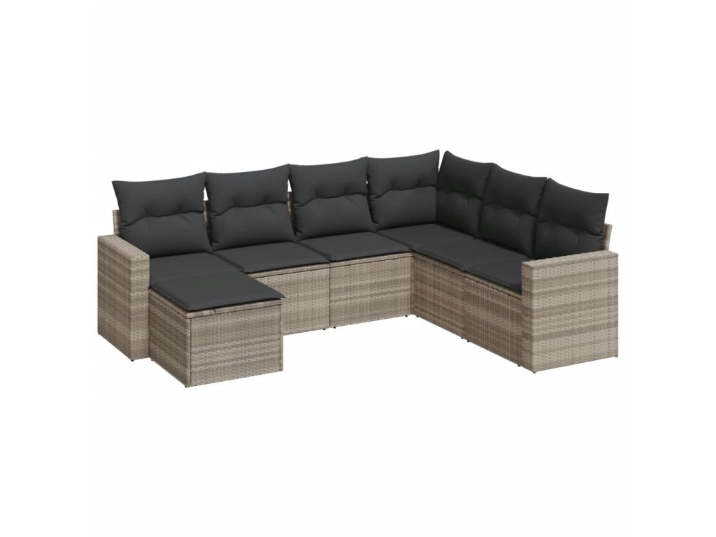 7dílná zahradní sedací souprava a podušky světle šedá polyratan 3219292