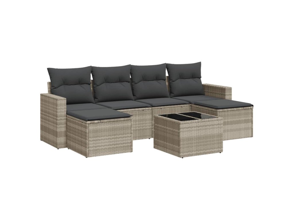 7dílná zahradní sedací souprava a podušky světle šedá polyratan 3219322