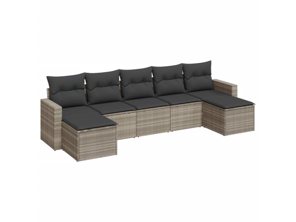 7dílná zahradní sedací souprava a podušky světle šedá polyratan 3219332