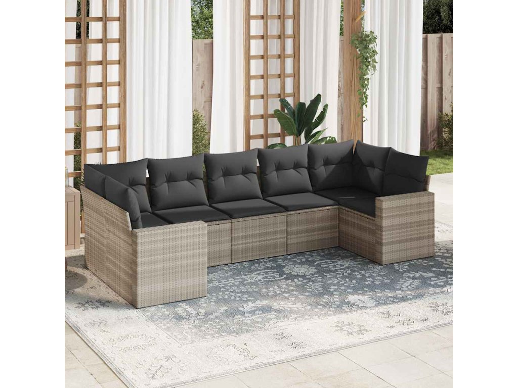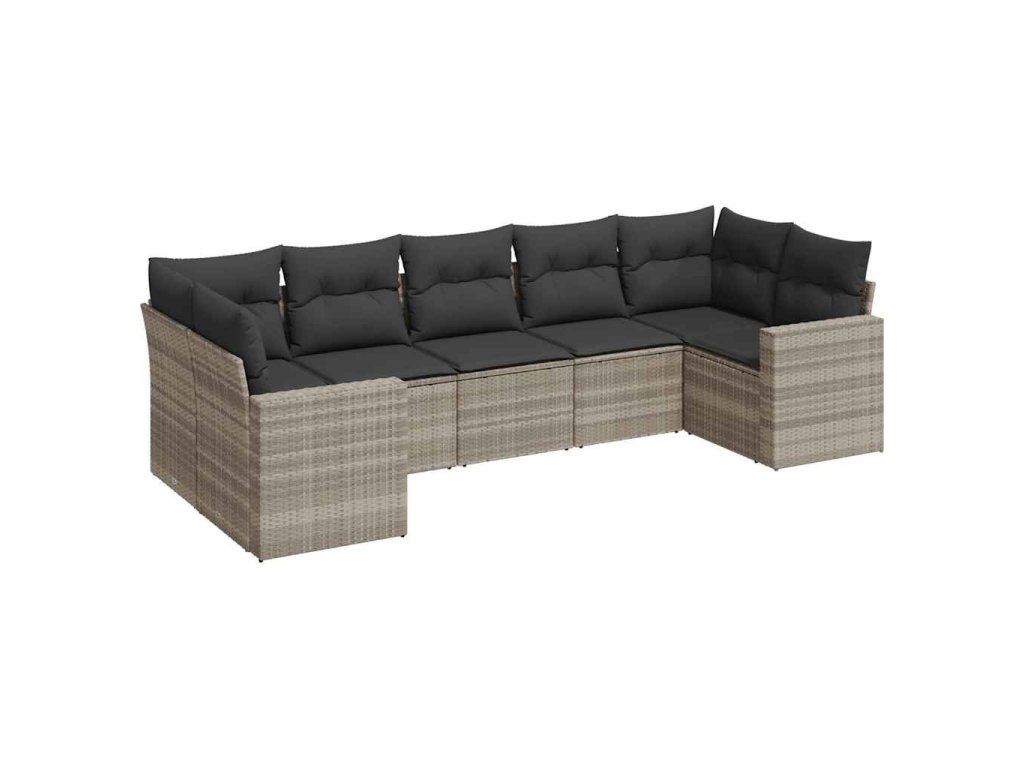 7dílná zahradní sedací souprava a podušky světle šedá polyratan 3219382