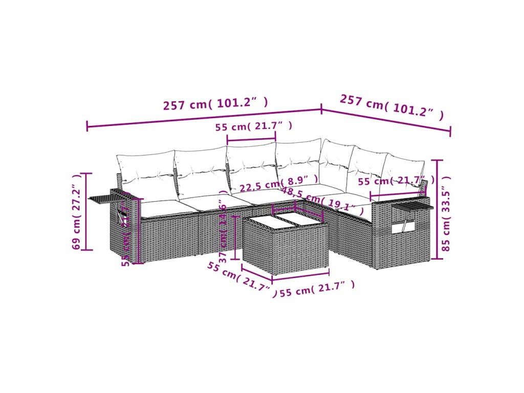 Tato zahradní sedací souprava je dokonalým doplňkem vaší zahrady, terasy nebo dvorku a poskytne vám pohodlné a příjemné místo, kde si můžete povídat s rodinou a přáteli nebo jen tak odpočívat a užívat si pobyt venku.