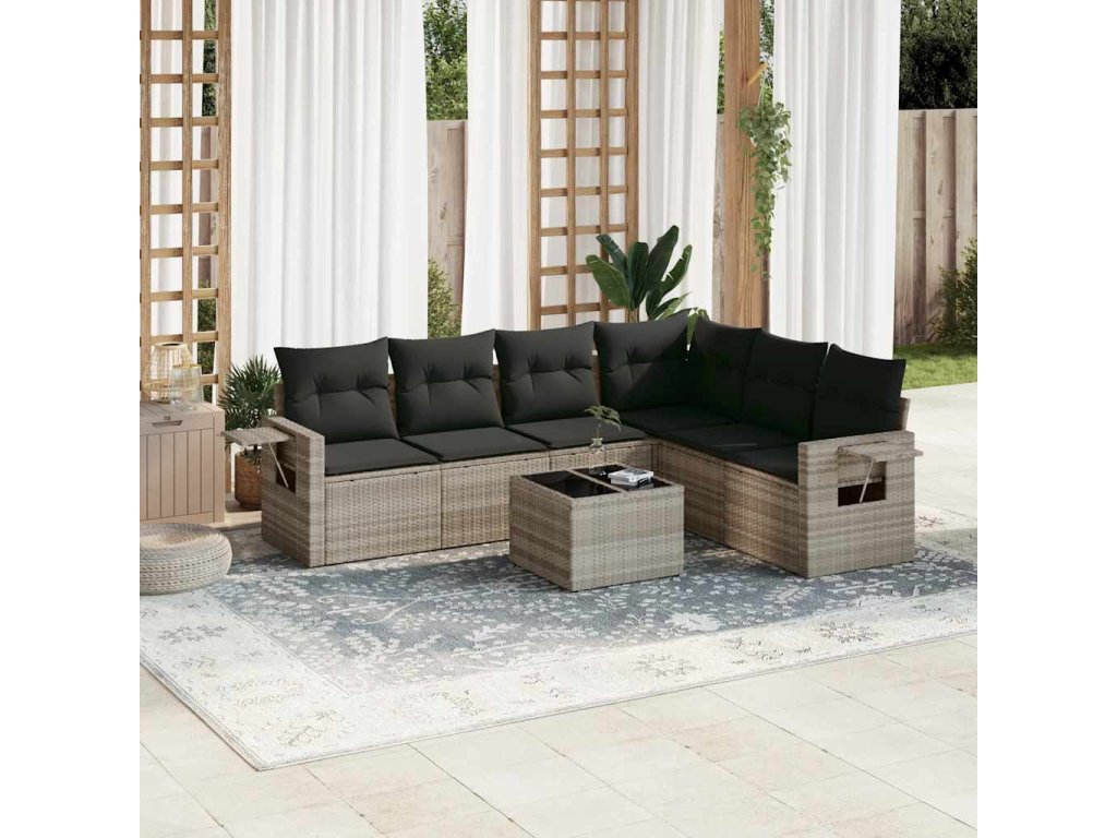 7dílná zahradní sedací souprava a podušky světle šedá polyratan 3220221