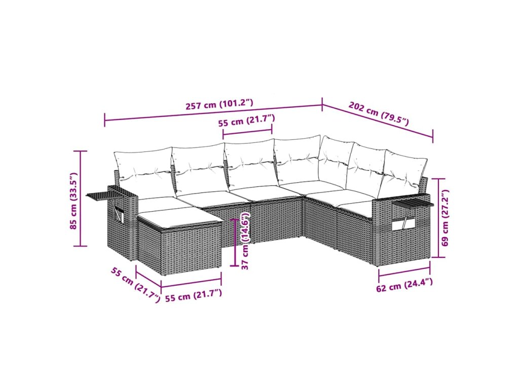 Tato zahradní sedací souprava je dokonalým doplňkem vaší zahrady, terasy nebo dvorku a poskytne vám pohodlné a příjemné místo, kde si můžete povídat s rodinou a přáteli nebo jen tak odpočívat a užívat si pobyt venku.