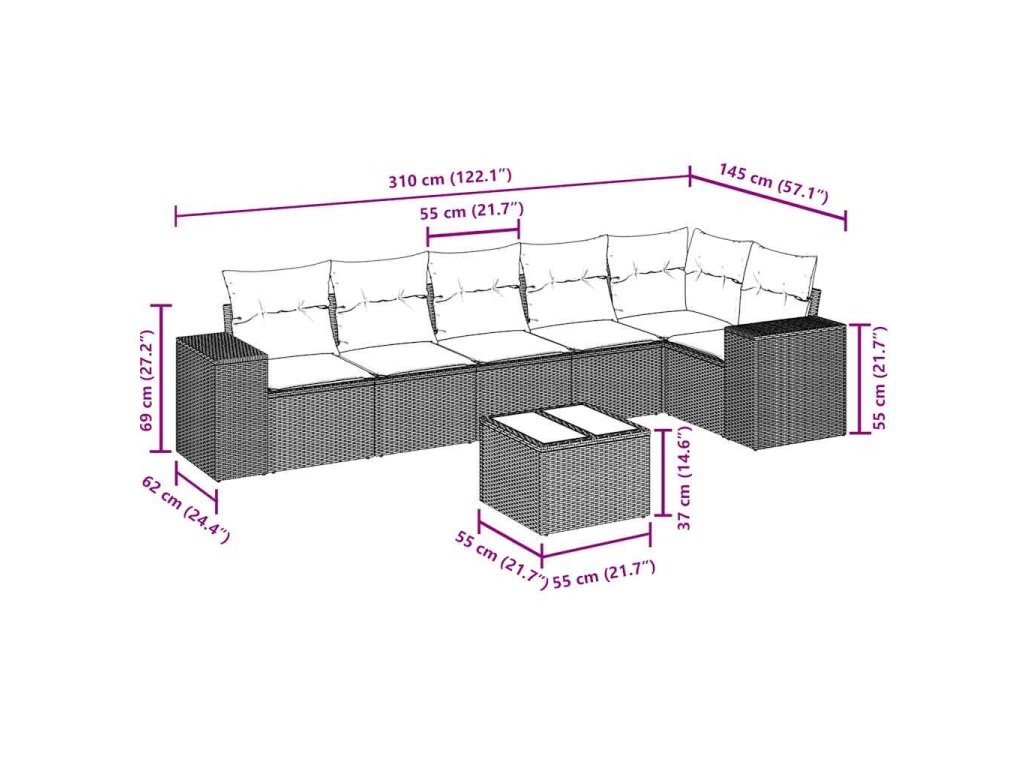 Tato zahradní sedací souprava je dokonalým doplňkem vaší zahrady, terasy nebo dvorku a poskytne vám pohodlné a příjemné místo, kde si můžete povídat s rodinou a přáteli nebo jen tak odpočívat a užívat si pobyt venku.