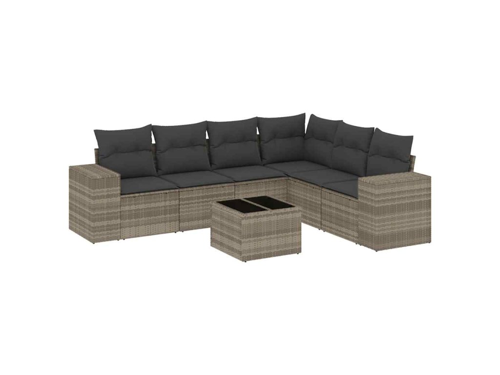 7dílná zahradní sedací souprava a podušky světle šedá polyratan 3222621