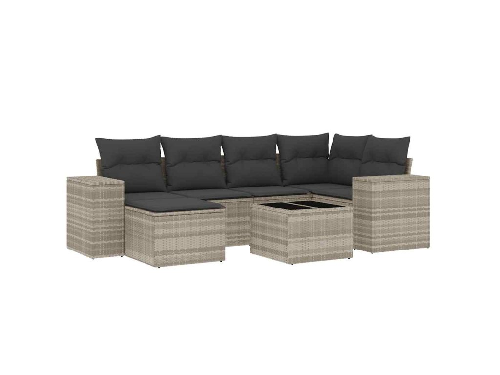 7dílná zahradní sedací souprava a podušky světle šedá polyratan 3222871
