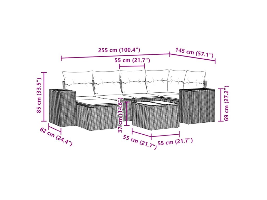Tato zahradní sedací souprava je dokonalým doplňkem vaší zahrady, terasy nebo dvorku a poskytne vám pohodlné a příjemné místo, kde si můžete povídat s rodinou a přáteli nebo jen tak odpočívat a užívat si pobyt venku.