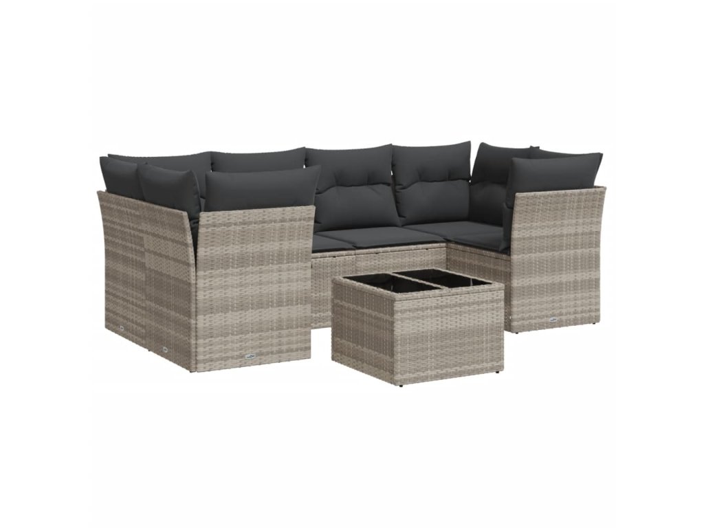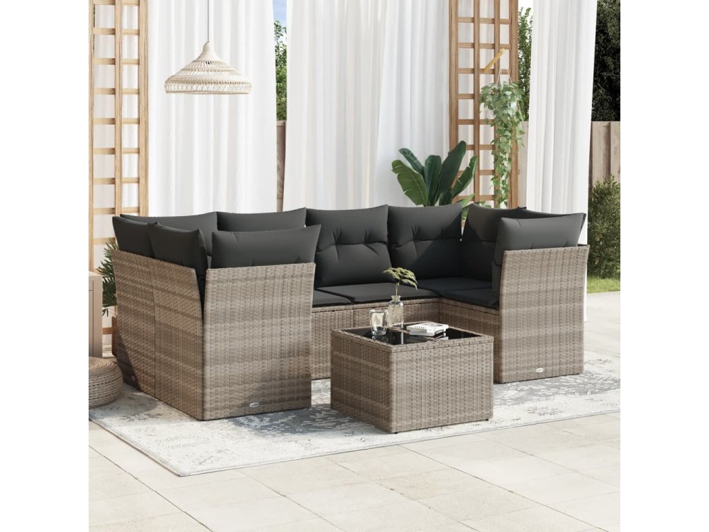 7dílná zahradní sedací souprava a podušky světle šedá polyratan 3249111
