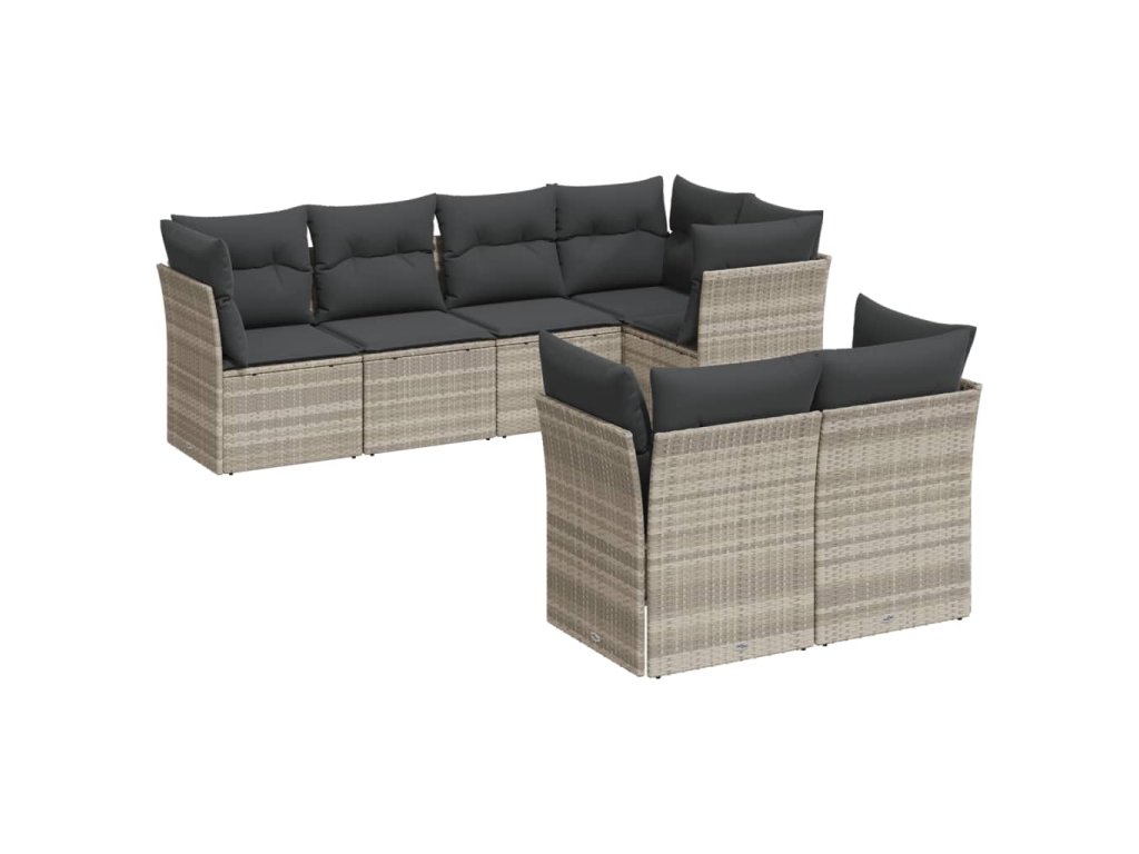 7dílná zahradní sedací souprava a podušky světle šedá polyratan 3249741