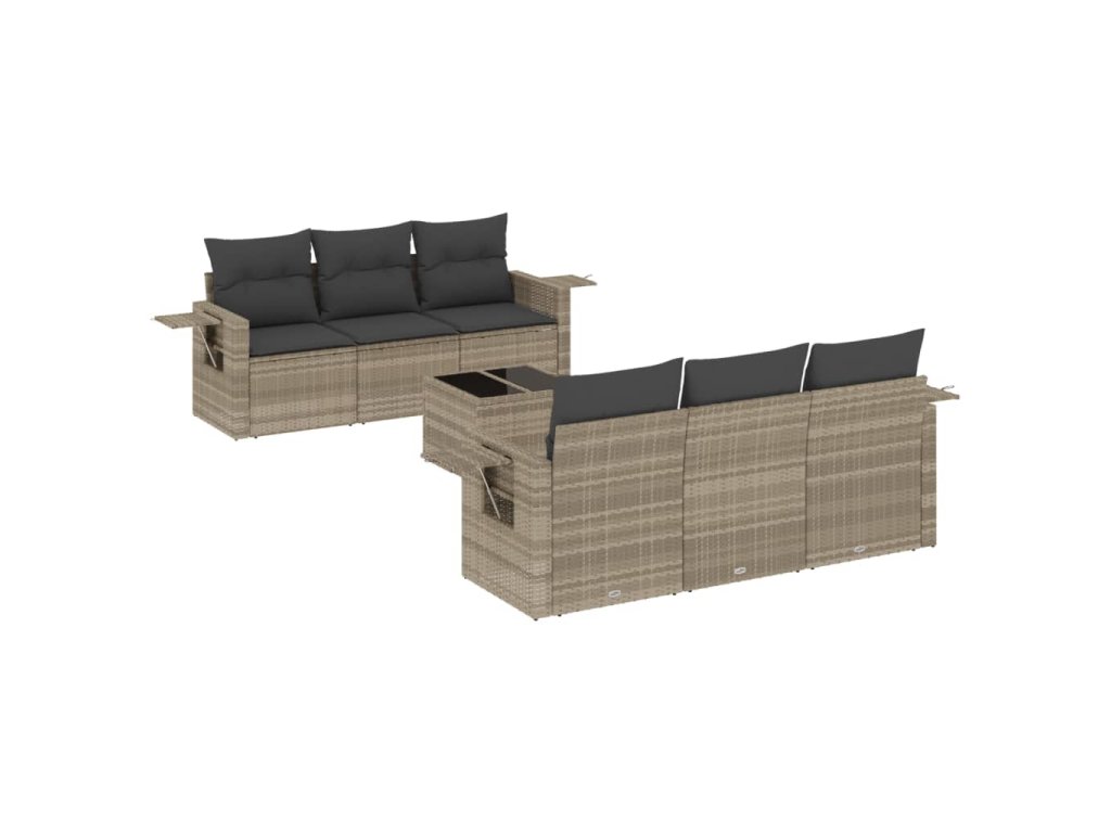 7dílná zahradní sedací souprava a podušky světle šedá polyratan 3252249