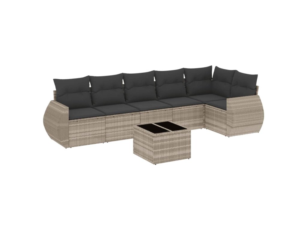 7dílná zahradní sedací souprava a podušky světle šedá polyratan 3253739