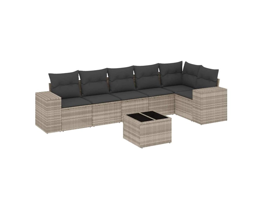 7dílná zahradní sedací souprava a podušky světle šedá polyratan 3254939