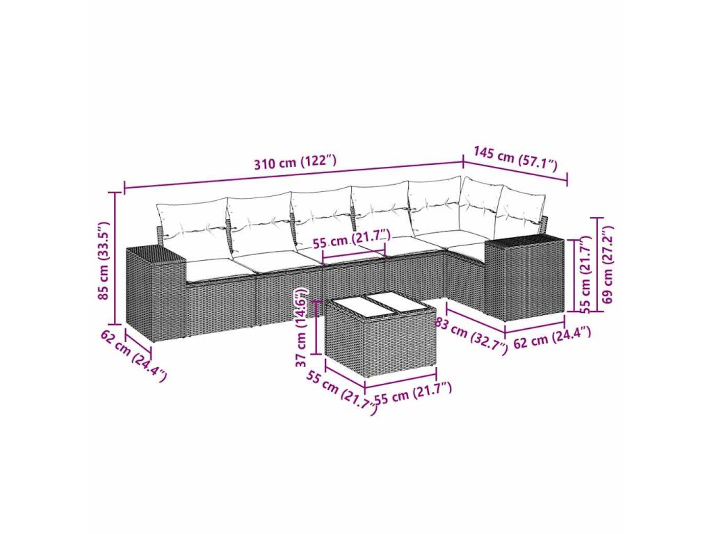 Tato zahradní sedací souprava je dokonalým doplňkem vaší zahrady, terasy nebo dvorku a poskytne vám pohodlné a příjemné místo, kde si můžete povídat s rodinou a přáteli nebo jen tak odpočívat a užívat si pobyt venku.