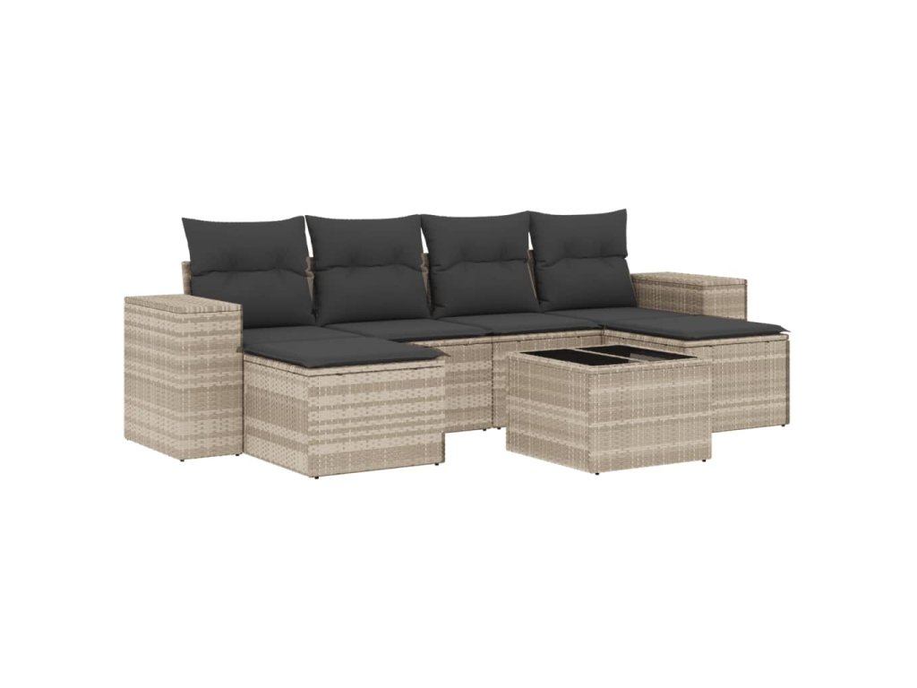 7dílná zahradní sedací souprava a podušky světle šedá polyratan 3255269