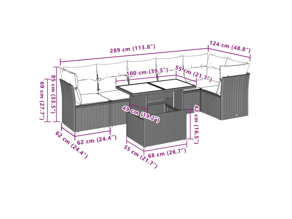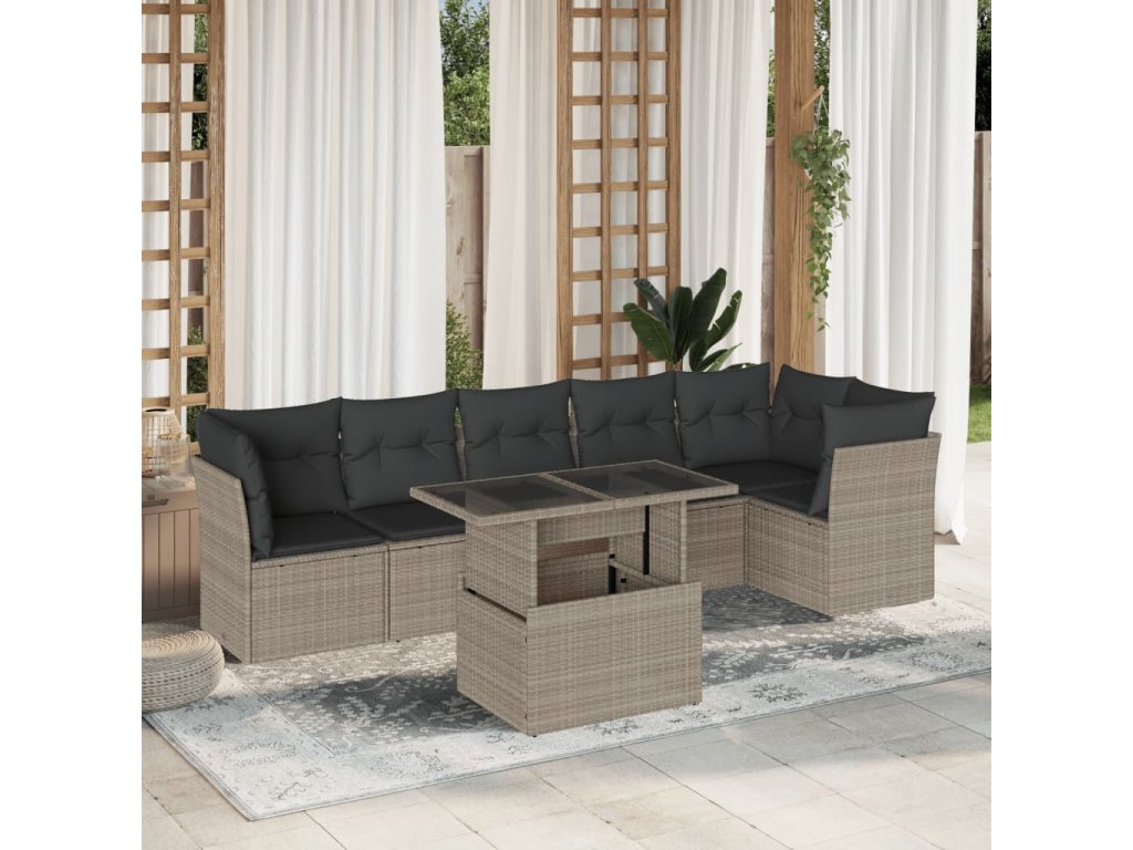 7dílná zahradní sedací souprava a podušky světle šedá polyratan 3266602
