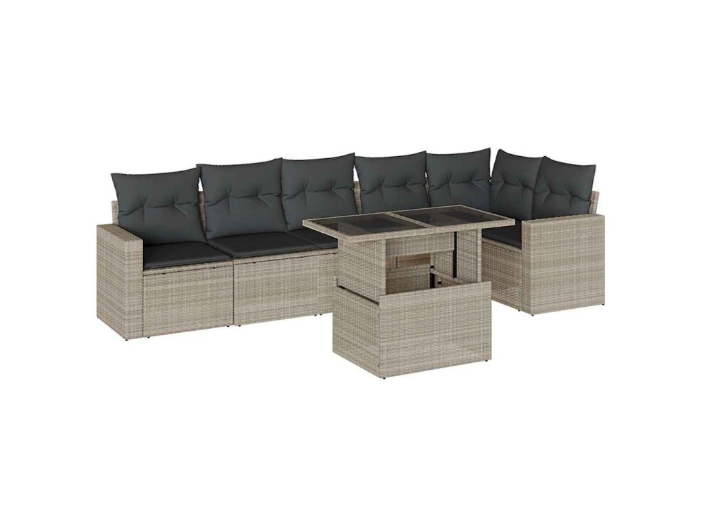 7dílná zahradní sedací souprava a podušky světle šedá polyratan 3267292