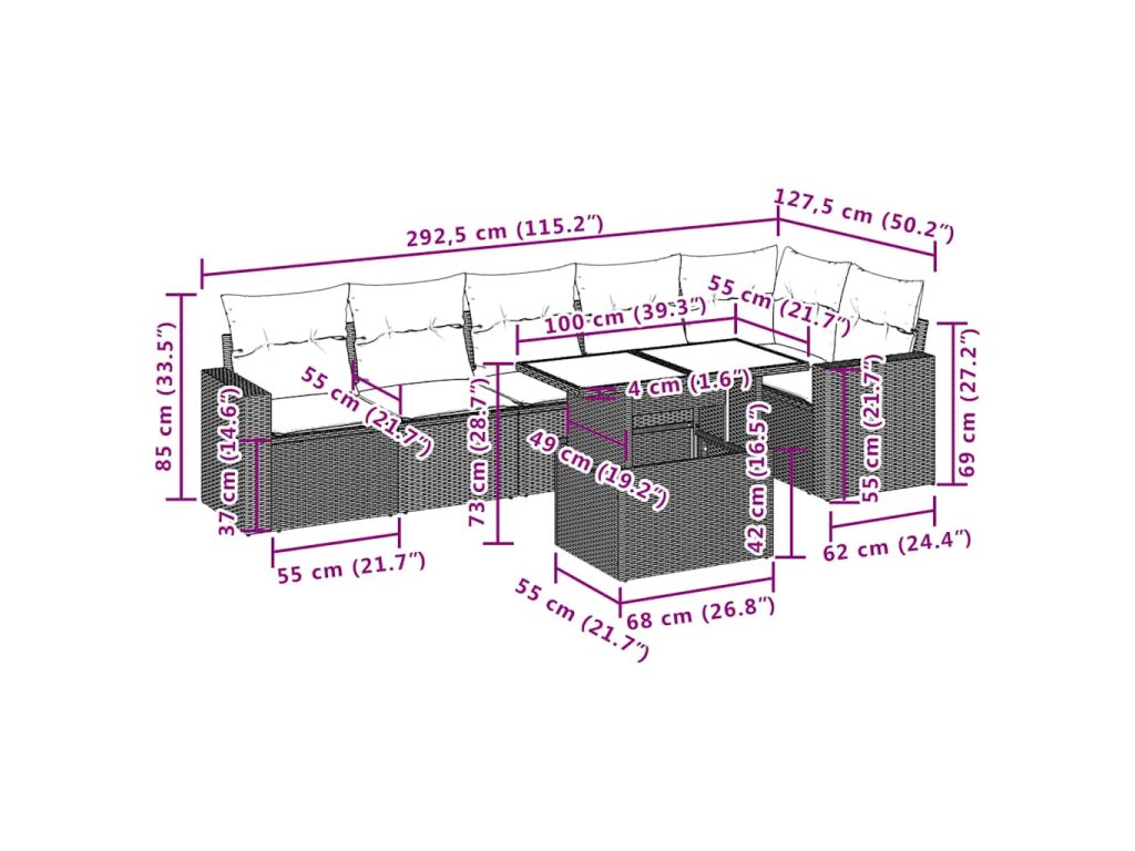 Tato zahradní sedací souprava je dokonalým doplňkem vaší zahrady, terasy nebo dvorku a poskytne vám pohodlné a příjemné místo, kde si můžete povídat s rodinou a přáteli nebo jen tak odpočívat a užívat si pobyt venku.