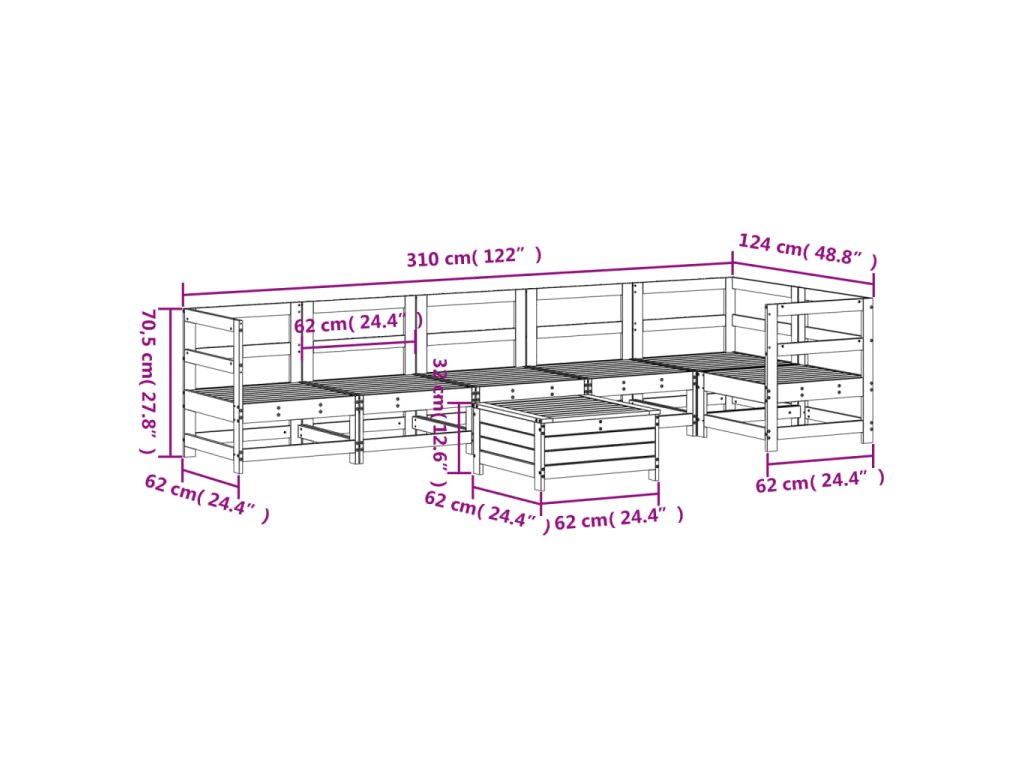 7dílná zahradní sedací souprava bílá masivní borové dřevo 3250865