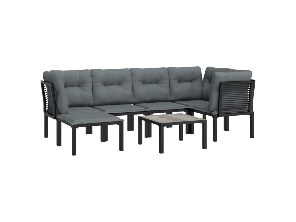 7dílná zahradní sedací souprava černá a šedá polyratan 3187759