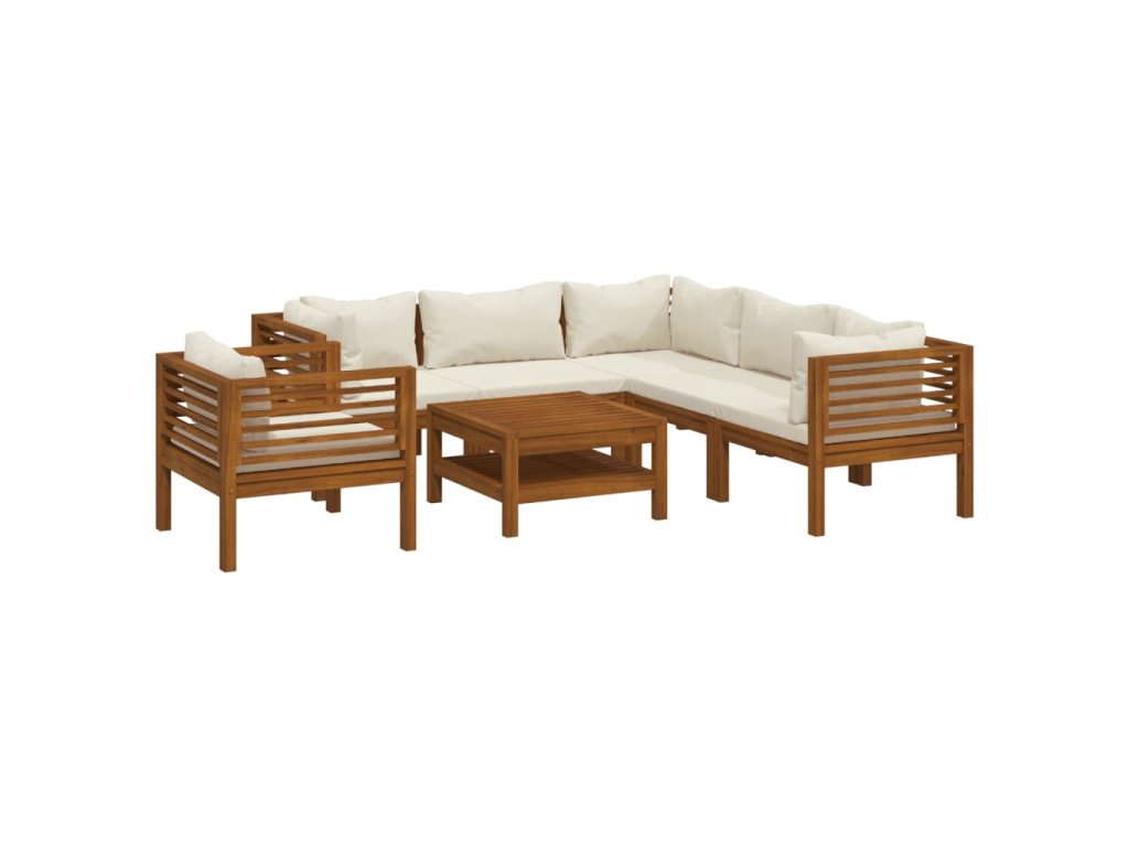 7dílná zahradní sedací souprava krémové podušky masivní akácie 3086938