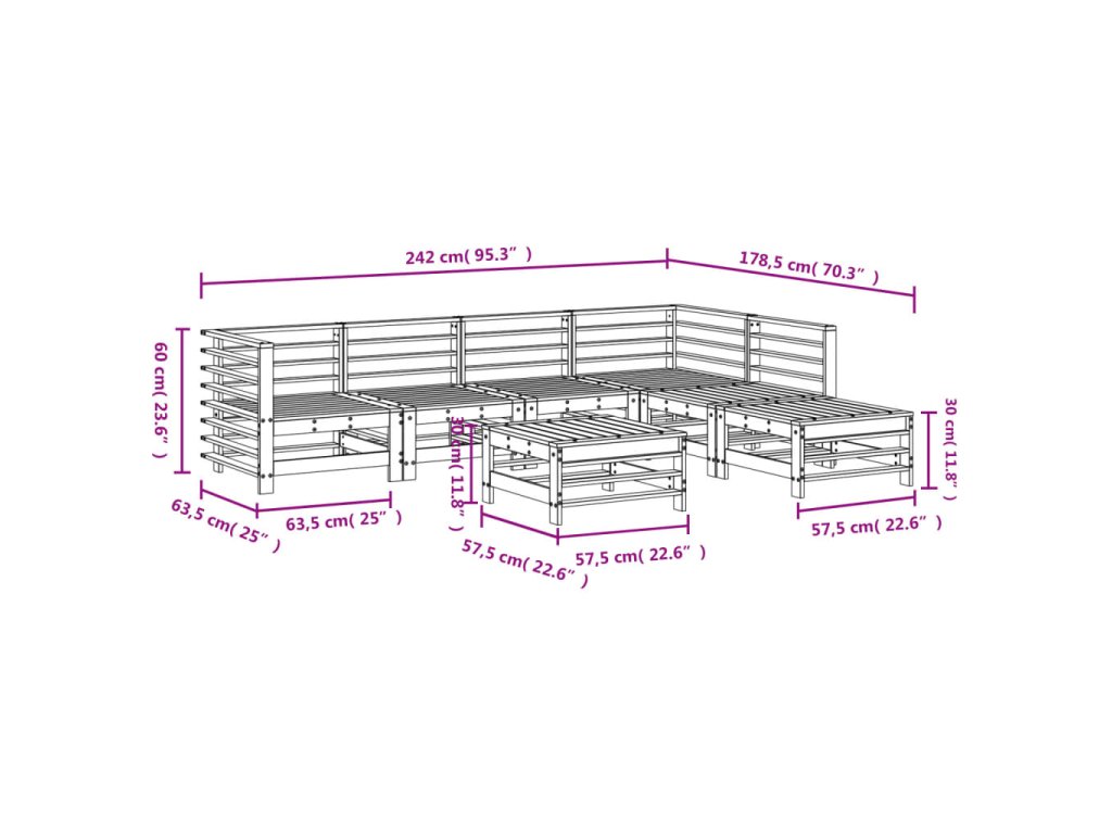 7dílná zahradní sedací souprava masivní borovice 3186438