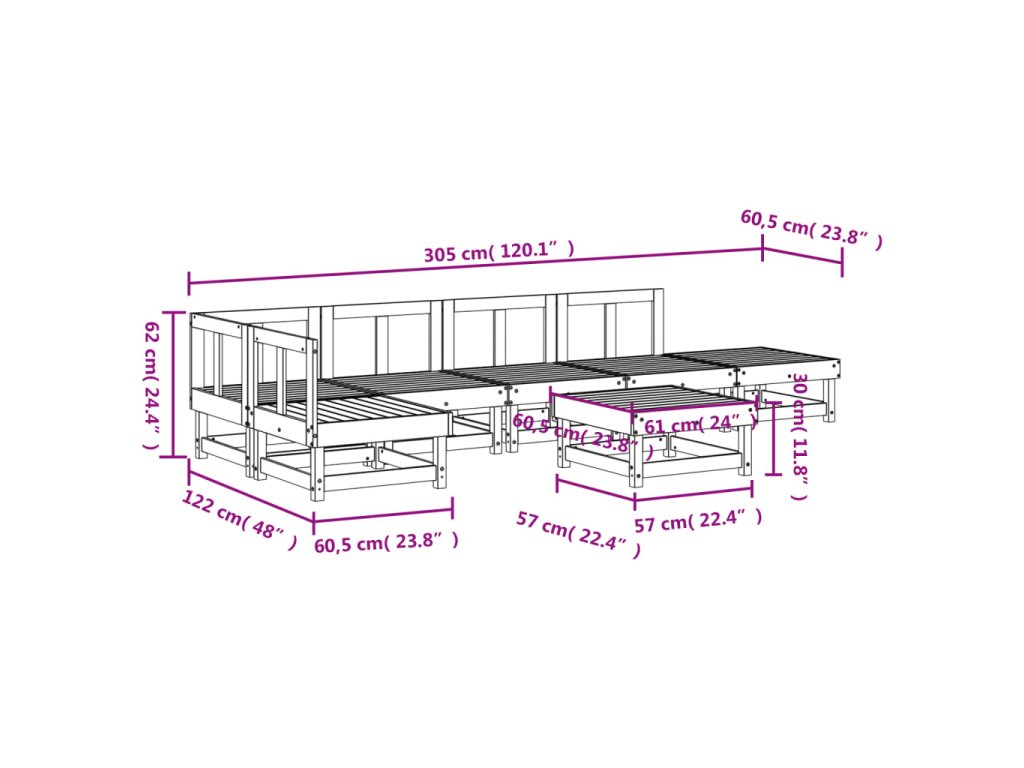 - Rozměry středové pohovky: 61 x 60,5 x 62 cm (Š x H x V)