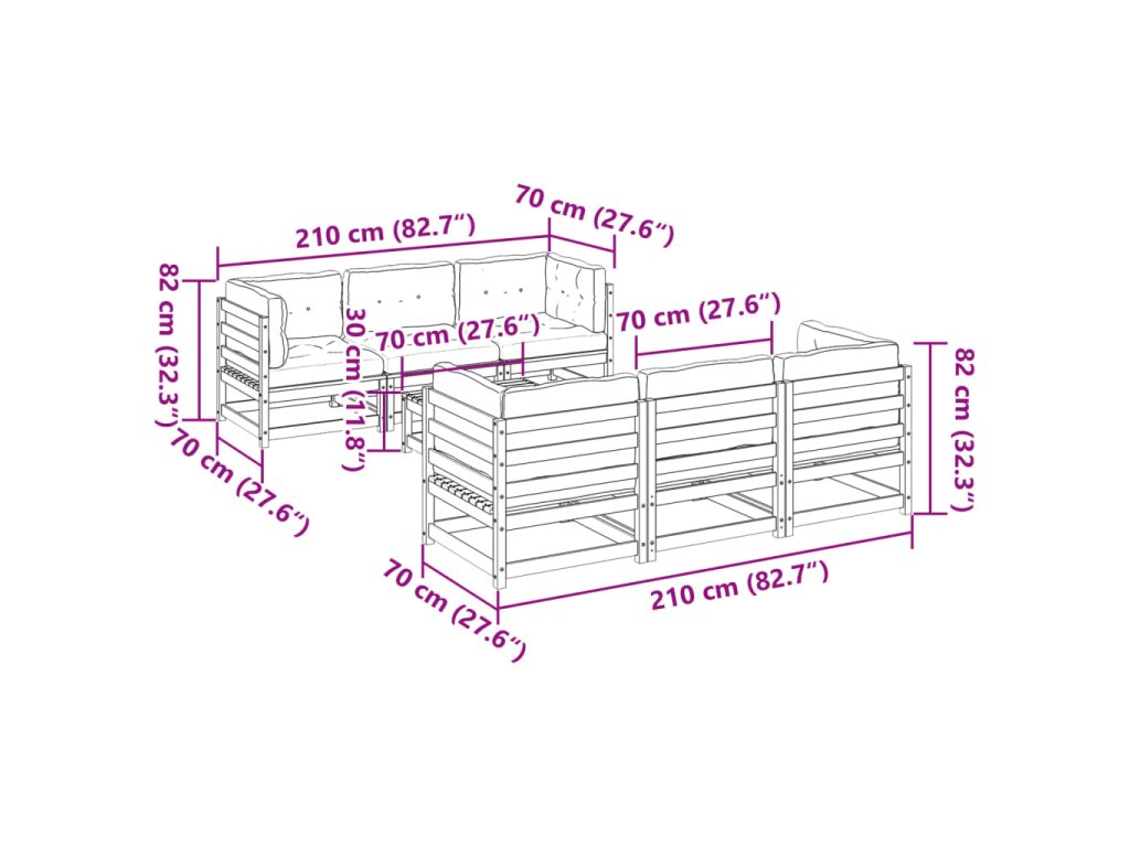 7dílná zahradní sedací souprava podušky voskově hnědá borovice 3299302