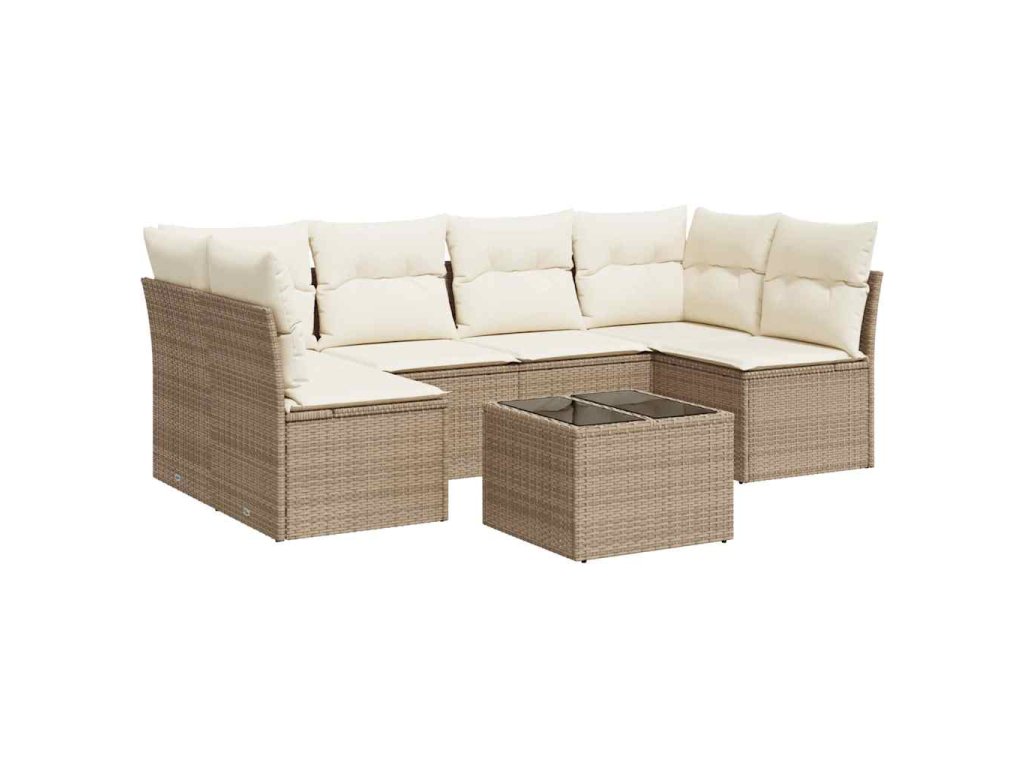 7dílná zahradní sedací souprava s poduškami béžová polyratan 3217398