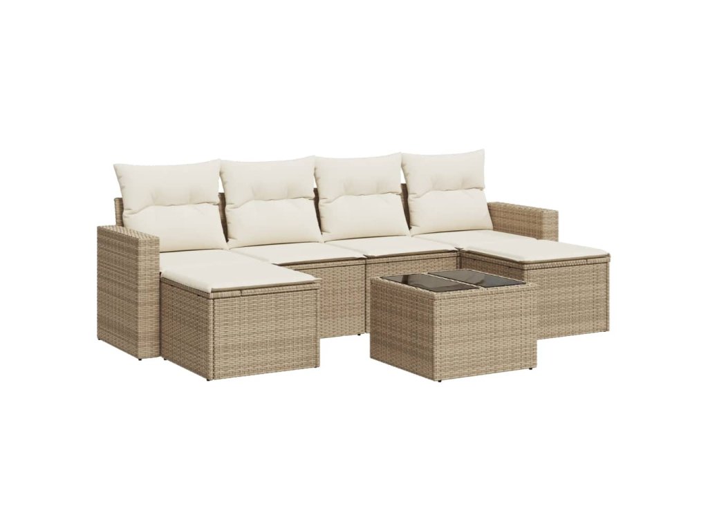 7dílná zahradní sedací souprava s poduškami béžová polyratan 3219318