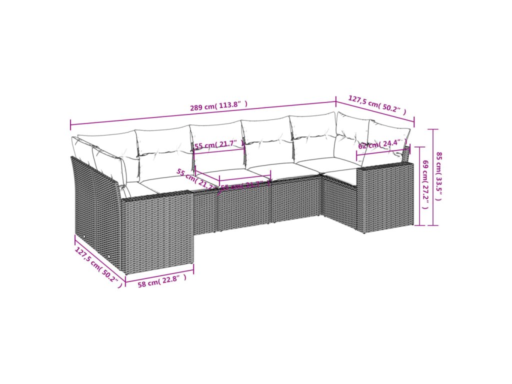 7dílná zahradní sedací souprava s poduškami béžová polyratan 3219379
