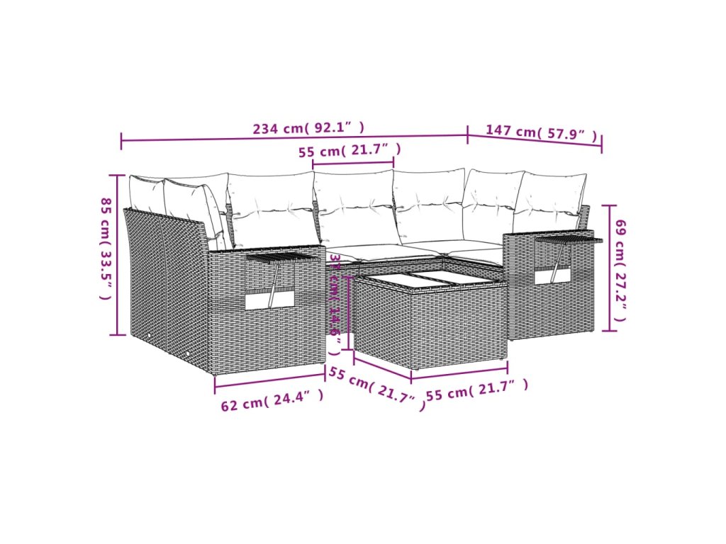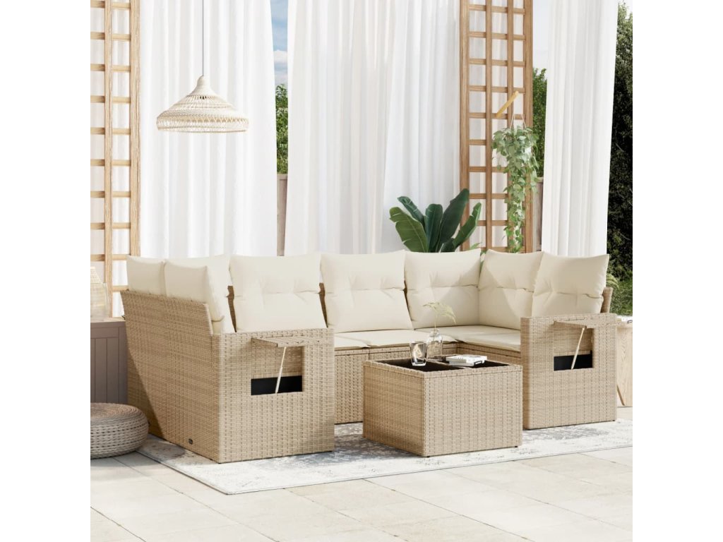 7dílná zahradní sedací souprava s poduškami béžová polyratan 3219917