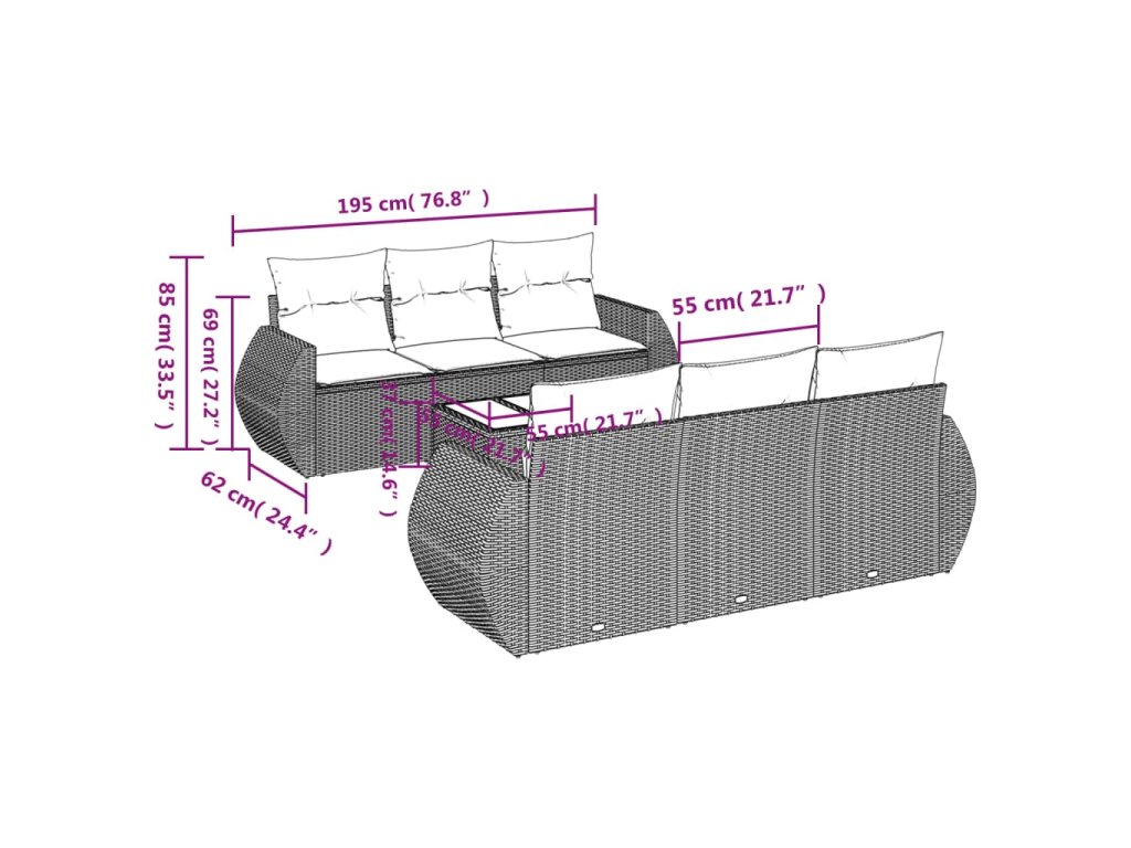 7dílná zahradní sedací souprava s poduškami béžová polyratan 3221108