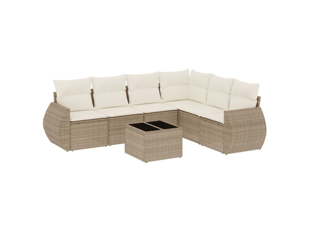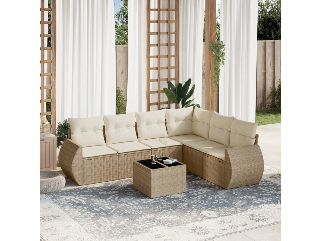 7dílná zahradní sedací souprava s poduškami béžová polyratan 3221417