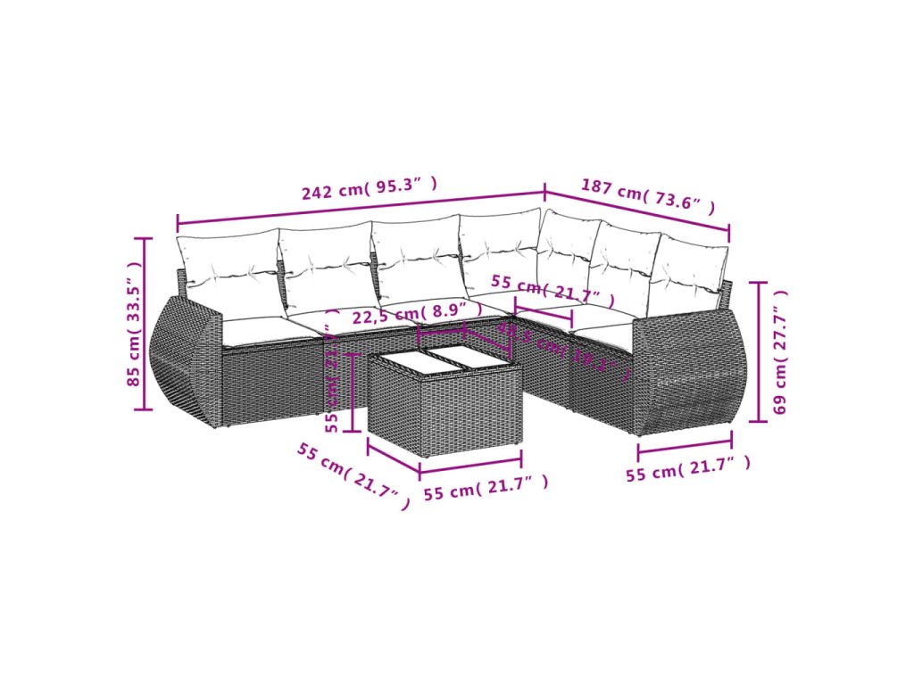 Tato zahradní sedací souprava je dokonalým doplňkem vaší zahrady, terasy nebo dvorku a poskytne vám pohodlné a příjemné místo, kde si můžete povídat s rodinou a přáteli nebo jen tak odpočívat a užívat si pobyt venku.