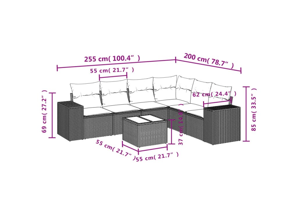 7dílná zahradní sedací souprava s poduškami béžová polyratan 3222617