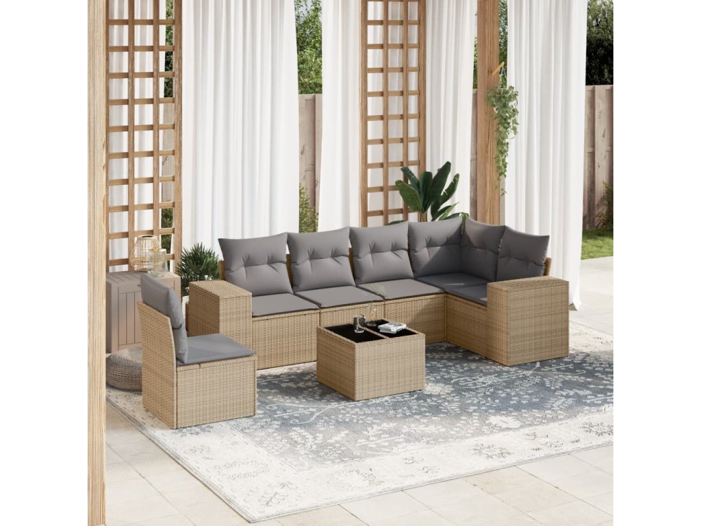 7dílná zahradní sedací souprava s poduškami béžová polyratan 3222638