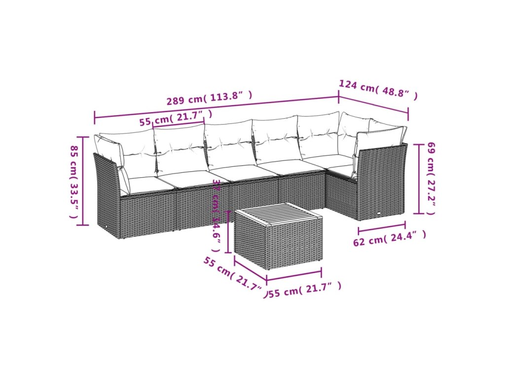 7dílná zahradní sedací souprava s poduškami béžová polyratan 3223651