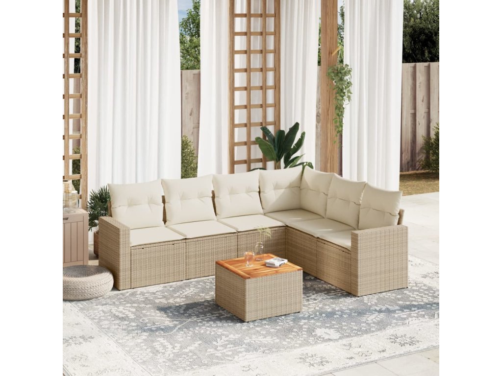 7dílná zahradní sedací souprava s poduškami béžová polyratan 3224140