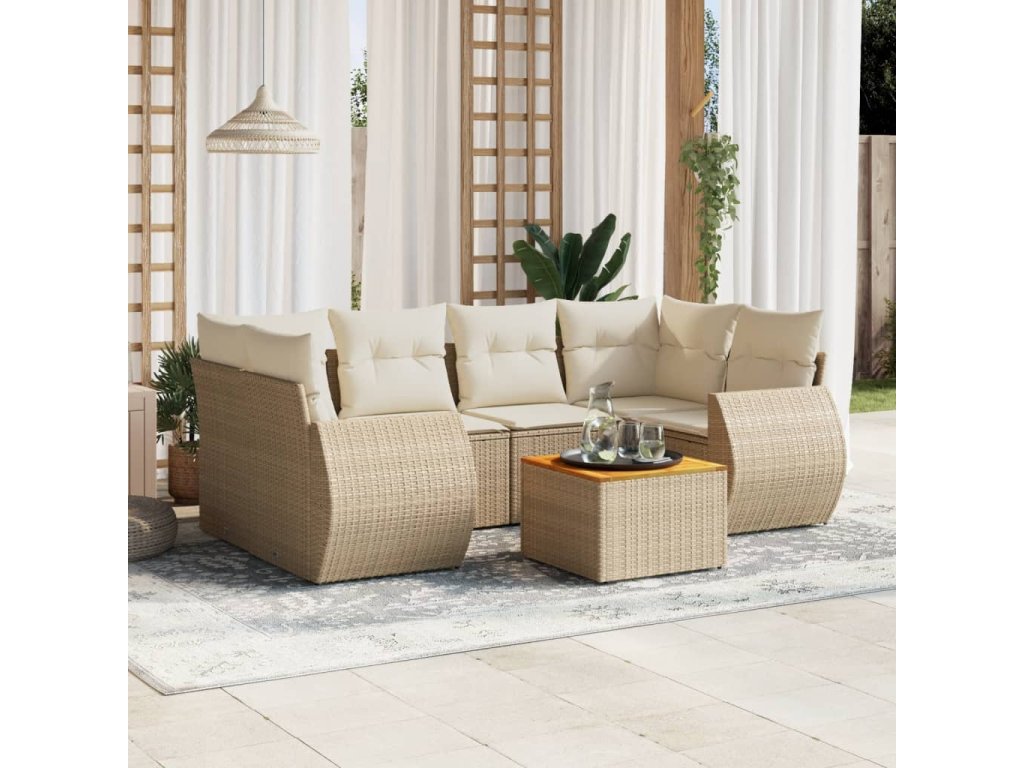 7dílná zahradní sedací souprava s poduškami béžová polyratan 3224903
