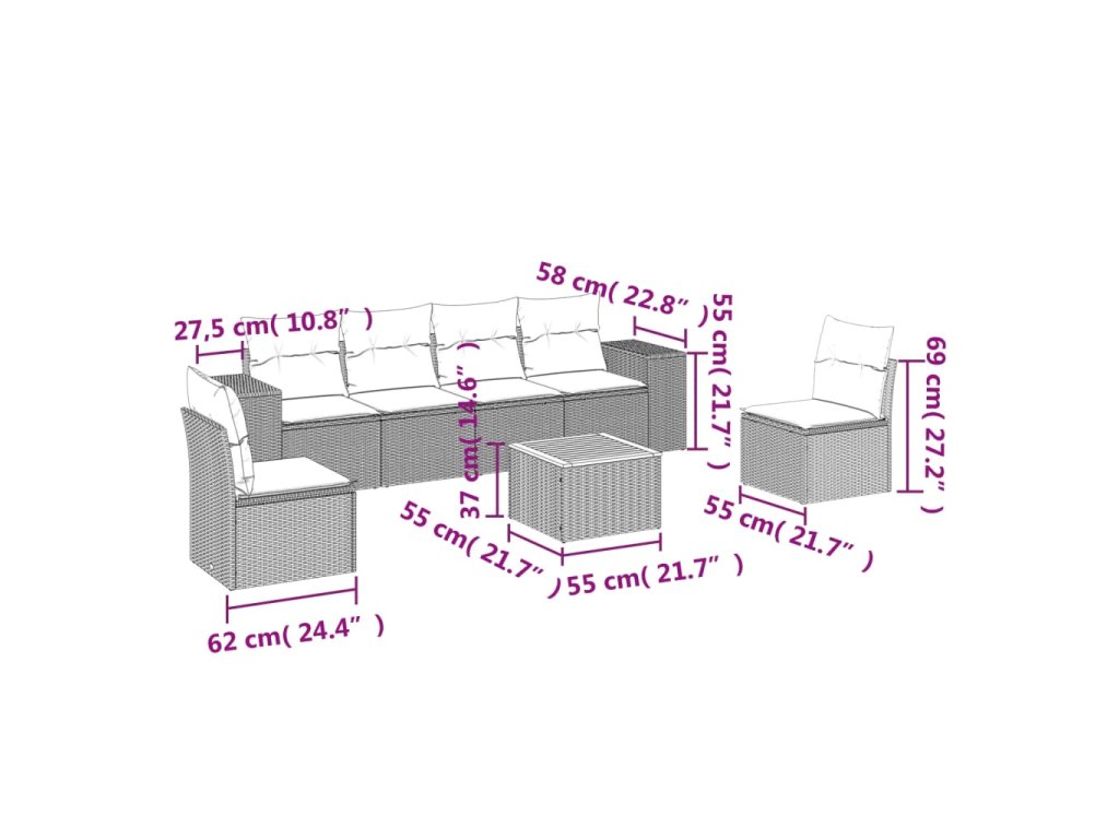 Tato zahradní sedací souprava je dokonalým doplňkem vaší zahrady, terasy nebo dvorku a poskytne vám pohodlné a příjemné místo, kde si můžete povídat s rodinou a přáteli nebo jen tak odpočívat a užívat si pobyt venku.