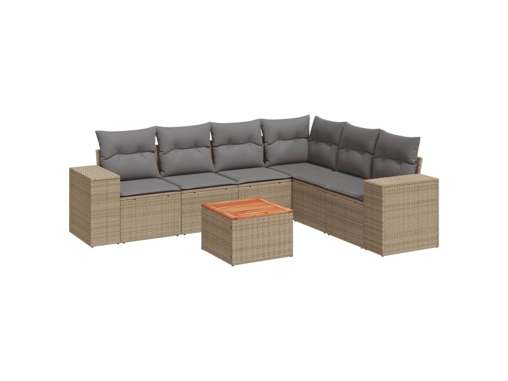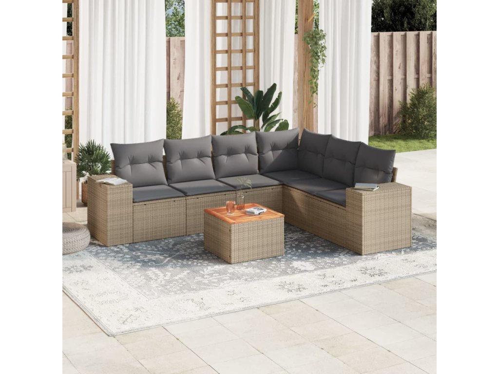 7dílná zahradní sedací souprava s poduškami béžová polyratan 3225464