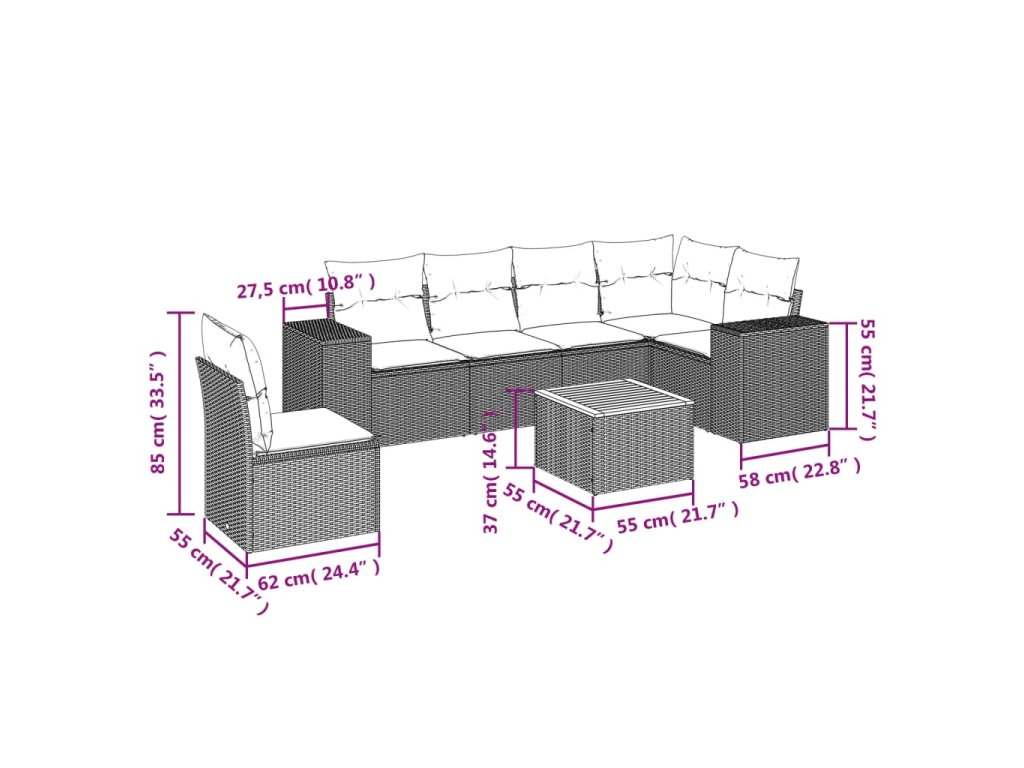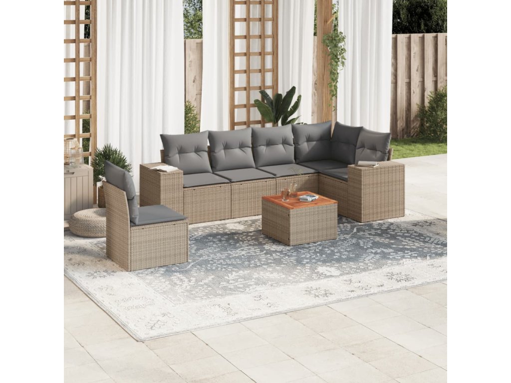7dílná zahradní sedací souprava s poduškami béžová polyratan 3225471