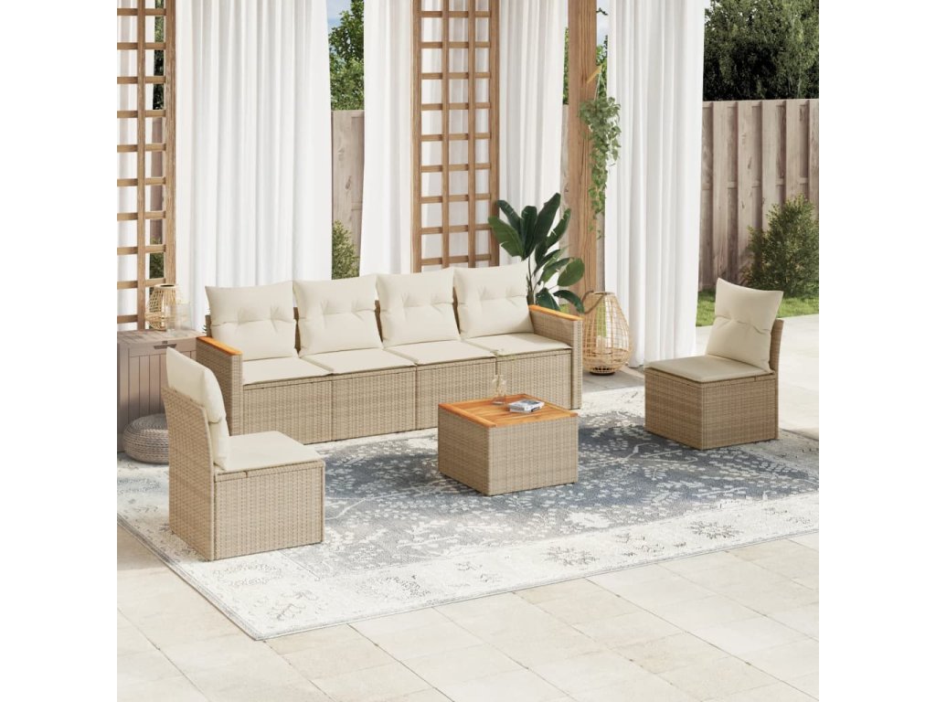 7dílná zahradní sedací souprava s poduškami béžová polyratan 3225869